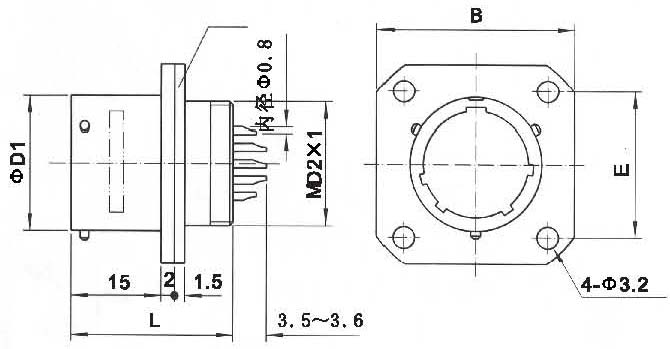 XCF插座(XCF插座帶螺紋和不帶螺紋兩種外形尺寸相同,圖形以帶螺紋為例) ![]()