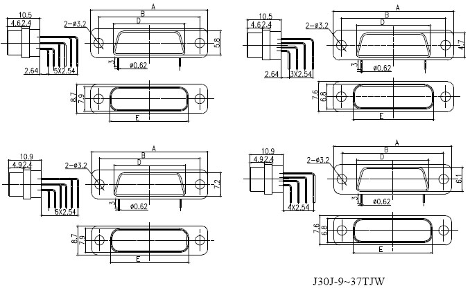 | 接觸件尾端與印制板的連接方式為彎插式,印制板網格尺寸為2.54×2.54。 產品外形尺寸 ![]()