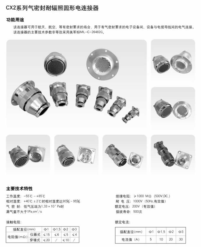 | CX2系列氣密封圓形連接器,主要技術參數非等效采用美軍標MIL-C-26482G。廣泛應用于各種電子儀器、密封容器的子設備與電源之間的電路連接。該系列氣密封連接器的連接方式為螺紋鎖緊連接,使用方便。插座采用玻璃燒結工藝,氣密性好。 密封穿墻電連接器主要用于氣密座艙及其他電氣、無線電設備,需要保持氣密性能穿過墻壁的電連接。 該系列密封連接器目前有七個殼體號,二十九個孔組數,有非密封、密封和密封穿墻等品種。尾部附件有直式壓線式、護線管式、彎式壓線式和屏蔽式四個品種;除以上四種形式的尾部附件外,還設計了 種尾部附件形式,供用戶選用。 ![]() ![]() 更多詳情請咨詢:http://www.bjzztd.com |