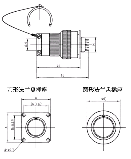 Y3外形及安裝尺寸 插頭座外形 ![]()