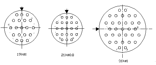 Y3接觸件孔位排列 ![]() 執行標準 Q/321283LSB06-2004《Y3系列圓型電連接器》
