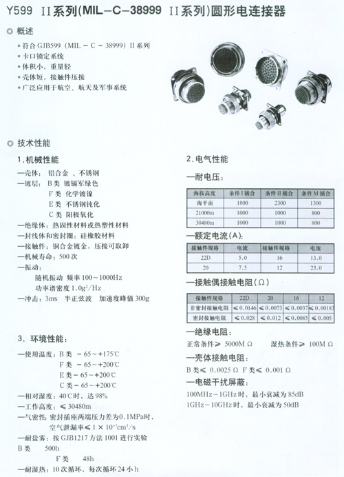 產品名稱: Y599II(MIL-C-38999I)系列圓形電連接器