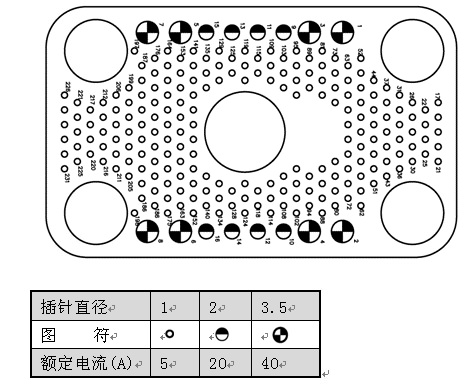 接觸件孔位排列(插頭插合面正視圖) ![]() 型號規格