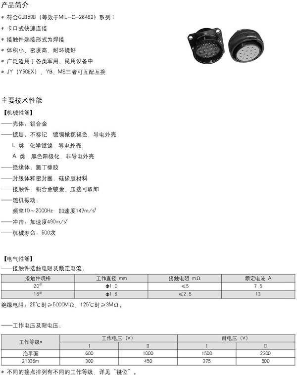 Y599II(MIL-C-38999I)系列圓形電連接器